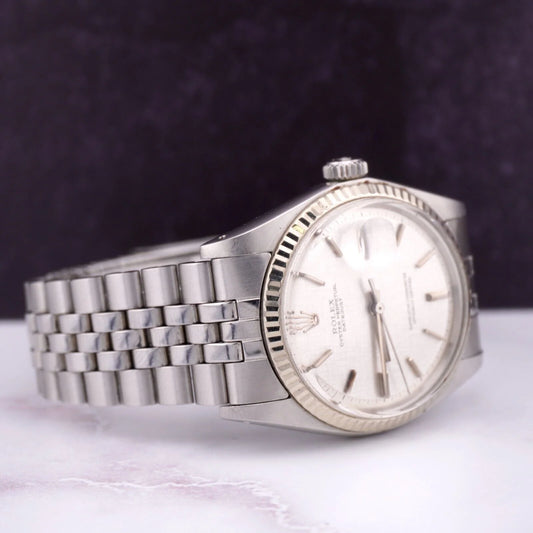 36Mm Datejust Mens Steel Watch Jubilee Band Silver Linen Dial 1601